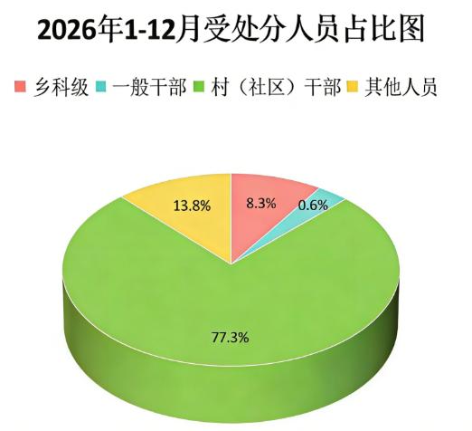 2025年1至12月,全区纪检监察机关共处置问题线索1188件,立案424件459人,结案360件,处分362人。受处分人员中,乡科级干部30人,占8.3%;一般干部2人,占比0.6%;村(社区)干部280人,占比77.3%;其他人员50人,占比13.8%。